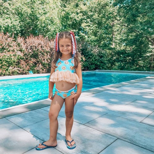 Blue Smiley Face Bikini Swim Suit Baby Bikini Toddlers Swim Etsy Finland